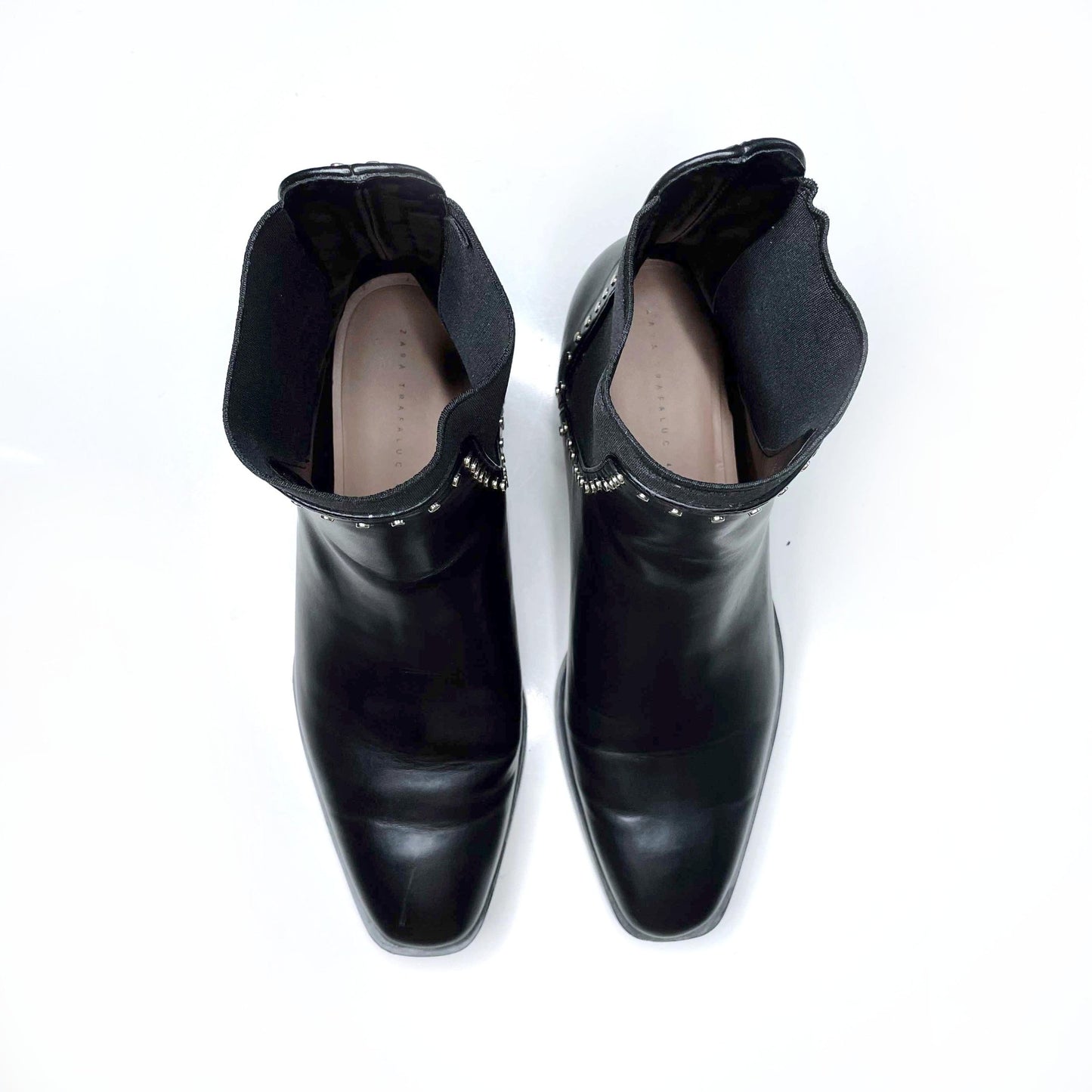 zara studded leather chelsea sock ankle boots - size 40