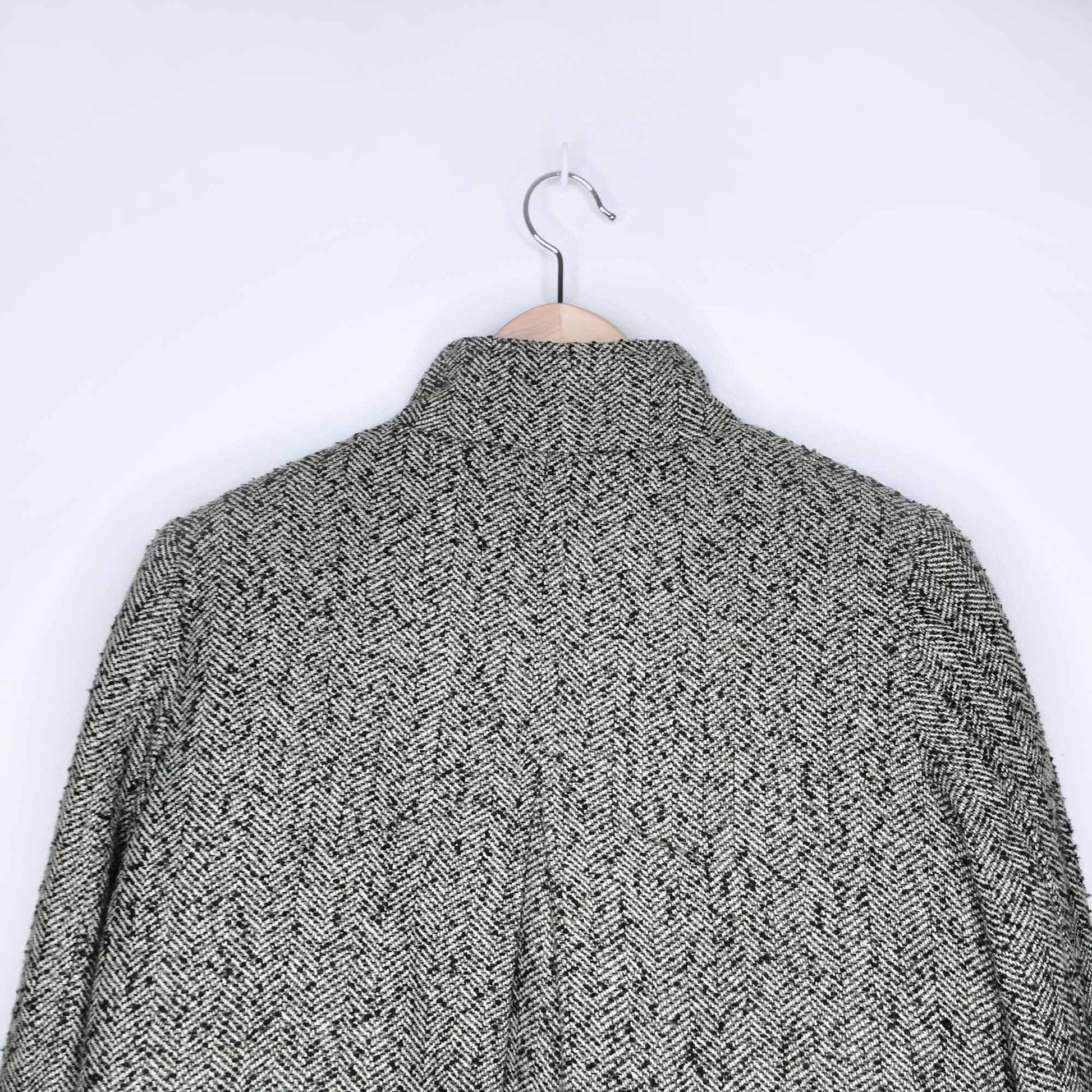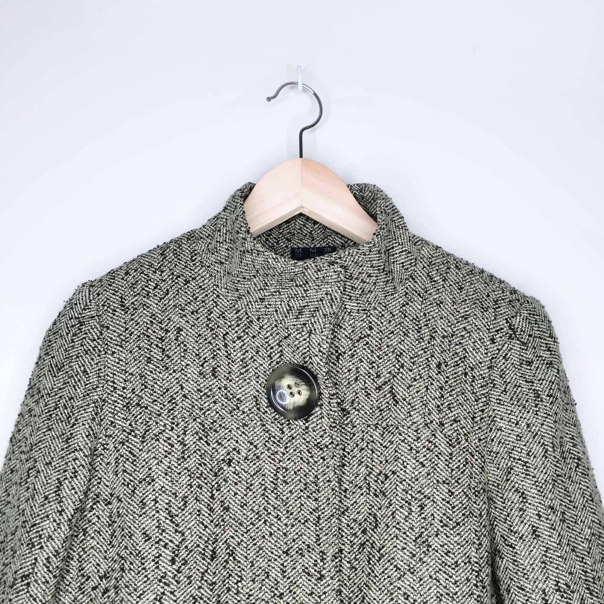 Item Description: This wool-blend short jacket from Zara’s wool collection features banded cuffs, hidden button closure and a beautiful herringbone weave. 51% polyester 27% wool 22% acrylic Lining: 100% polyester