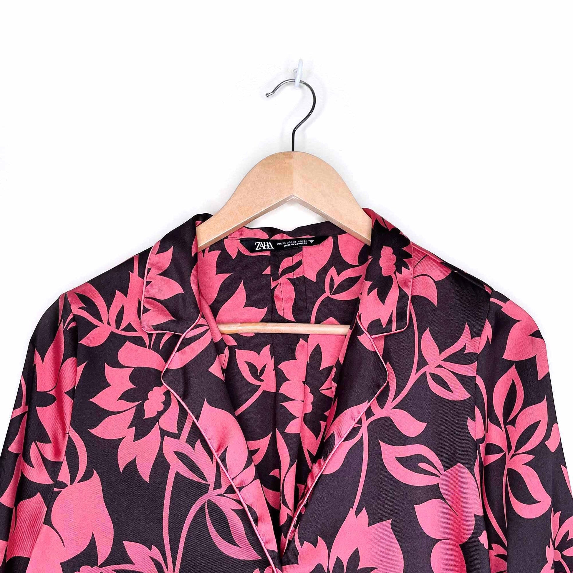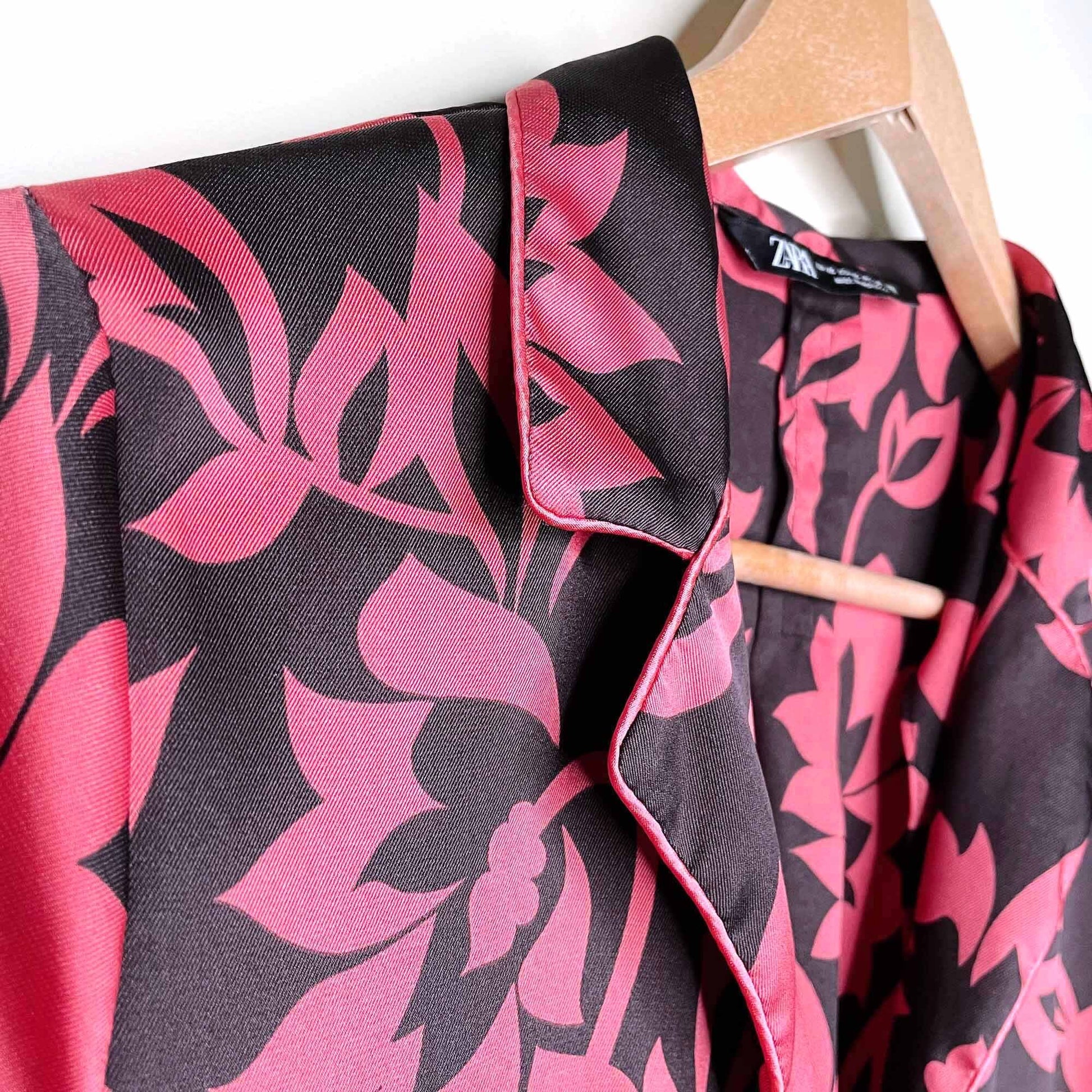 zara tropical pajama-style button down and wide leg pant set - sizexs